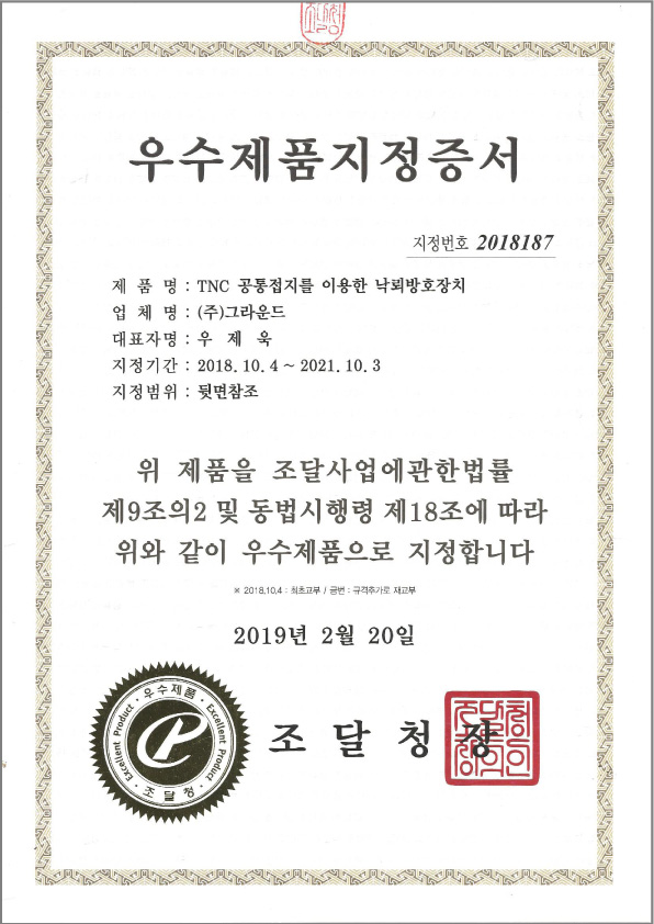 < ¿ì¼öÁ¦Ç°ÁöÁ¤Áõ¼ - TNC °øÅëÁ¢Áö¸¦ ÀÌ¿ëÇÑ ³«·Ú¹æÈ£ÀåÄ¡>