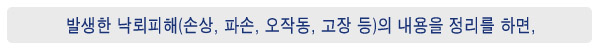 ¥°. ¹ß»ýÇÑ ³«·ÚÇÇÇØ(¼Õ»ó, ÆÄ¼Õ, ¿Àµ¿ÀÛ, °íÀå)ÀÇ ³»¿ëÀÌ ¹«¾ùÀΰ¡?